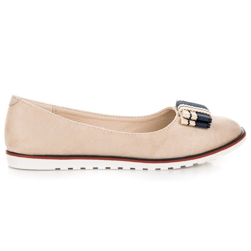 Ballerinas sind in einer gedämpften Farbpalette aus Braun und Beige erhältlich, wodurch sie sich problemlos mit verschiedenen Sets kombinieren lassen. Aus hochwertigem ökologischem Leder gefertigt, sorgen sie nicht nur für ein attraktives Aussehen, sondern auch für Tragekomfort den ganzen Tag. Das Außenmaterial fühlt sich weich an und die Innensohle aus dem gleichen Material sorgt für ein freies und angenehmes Fußgefühl.