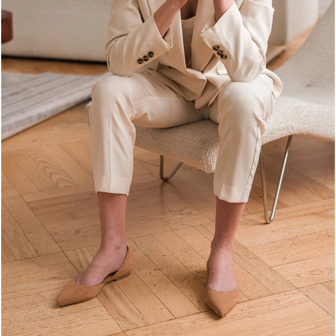 Ballerinas zeichnen sich durch eine spitze Spitze aus, die ihnen Eleganz verleiht und sie sowohl zu legeren als auch zu eleganteren Stilen perfekt passen lässt. Sie bestehen aus hochwertigem, natürlichem Wildleder und bieten Komfort und Haltbarkeit sowie ein elegantes Erscheinungsbild.