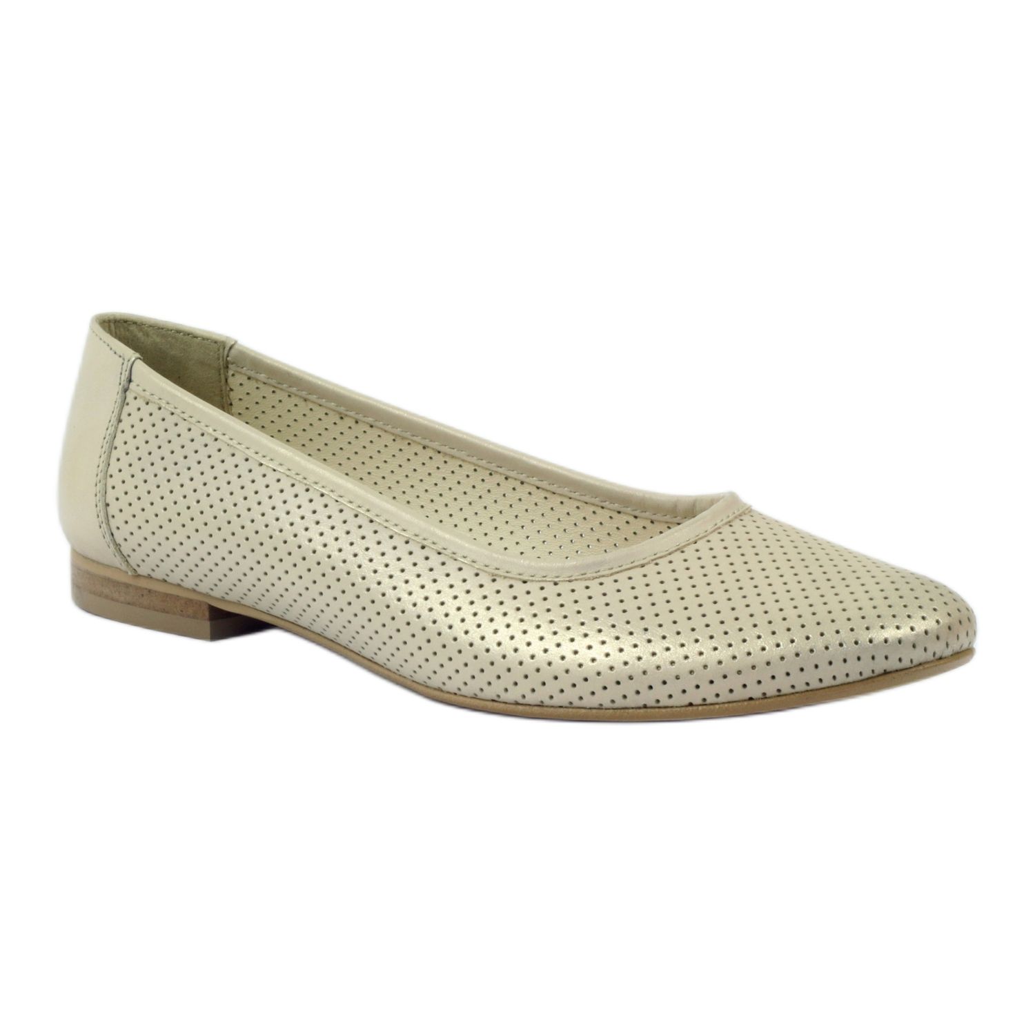 Die perforierten Ballerinas Angello 336 in Goldbeige sind die perfekte Wahl für jede Frau, die Wert auf Eleganz und Komfort legt. Diese vollständig aus Naturleder gefertigten Ballerinas zeichnen sich nicht nur durch ihr stilvolles Design, sondern auch durch ihre Funktionalität aus. Die feine Perforation des Materials sorgt für eine gute Belüftung und damit für ein angenehmes Tragegefühl auch an heißen Tagen.