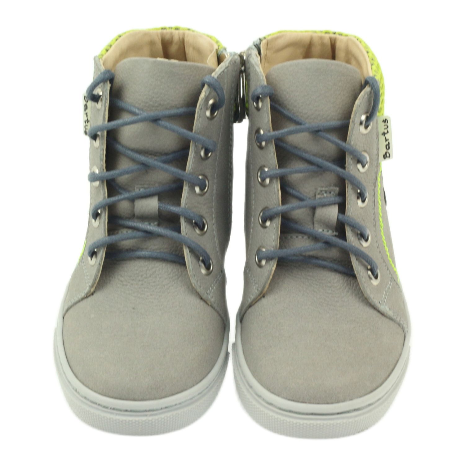 Bartuś Herbststiefel mit Reißverschlussmuster. 186 – Grau mit grünen Accessoires