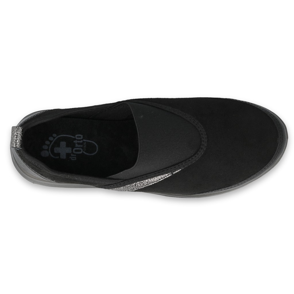 Das Fehlen von Reißverschlüssen und Schnürsenkeln ermöglicht ein schnelles und äußerst einfaches Anziehen, was im täglichen Gebrauch zweifellos ein Vorteil ist. Die aus hochwertigen Materialien gefertigten schwarzen Schuhe bieten höchsten Tragekomfort und der Stoff, aus dem sie gefertigt sind, garantiert Langlebigkeit und Pflegeleichtigkeit.