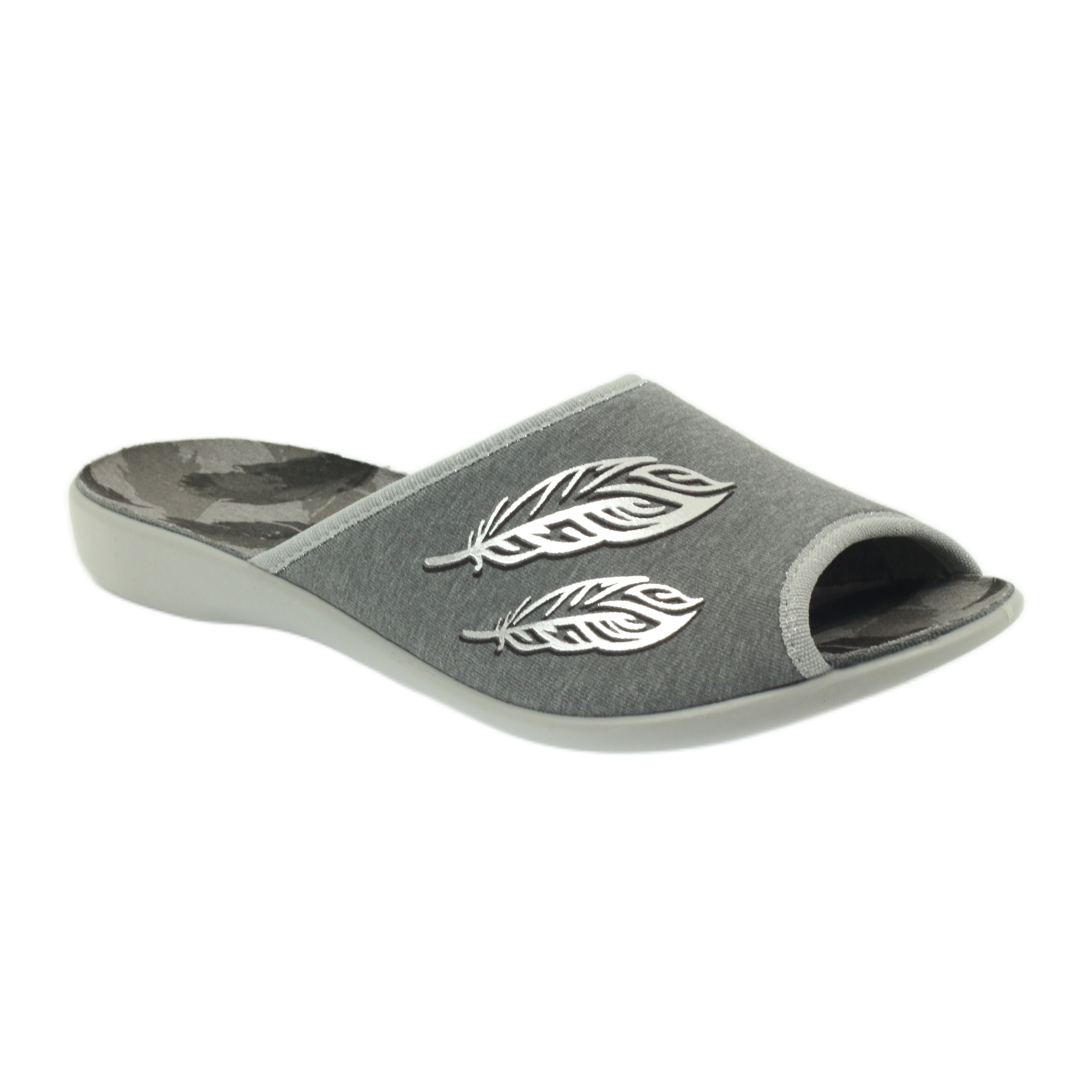 Entdecken Sie Komfort und Stil mit den Damenhausschuhen Befado 254D096 in elegantem Grau mit dezenten silbernen Blättern. Diese einzigartigen Schuhe eignen sich sowohl für zu Hause als auch für kurze Ausflüge in den Garten.