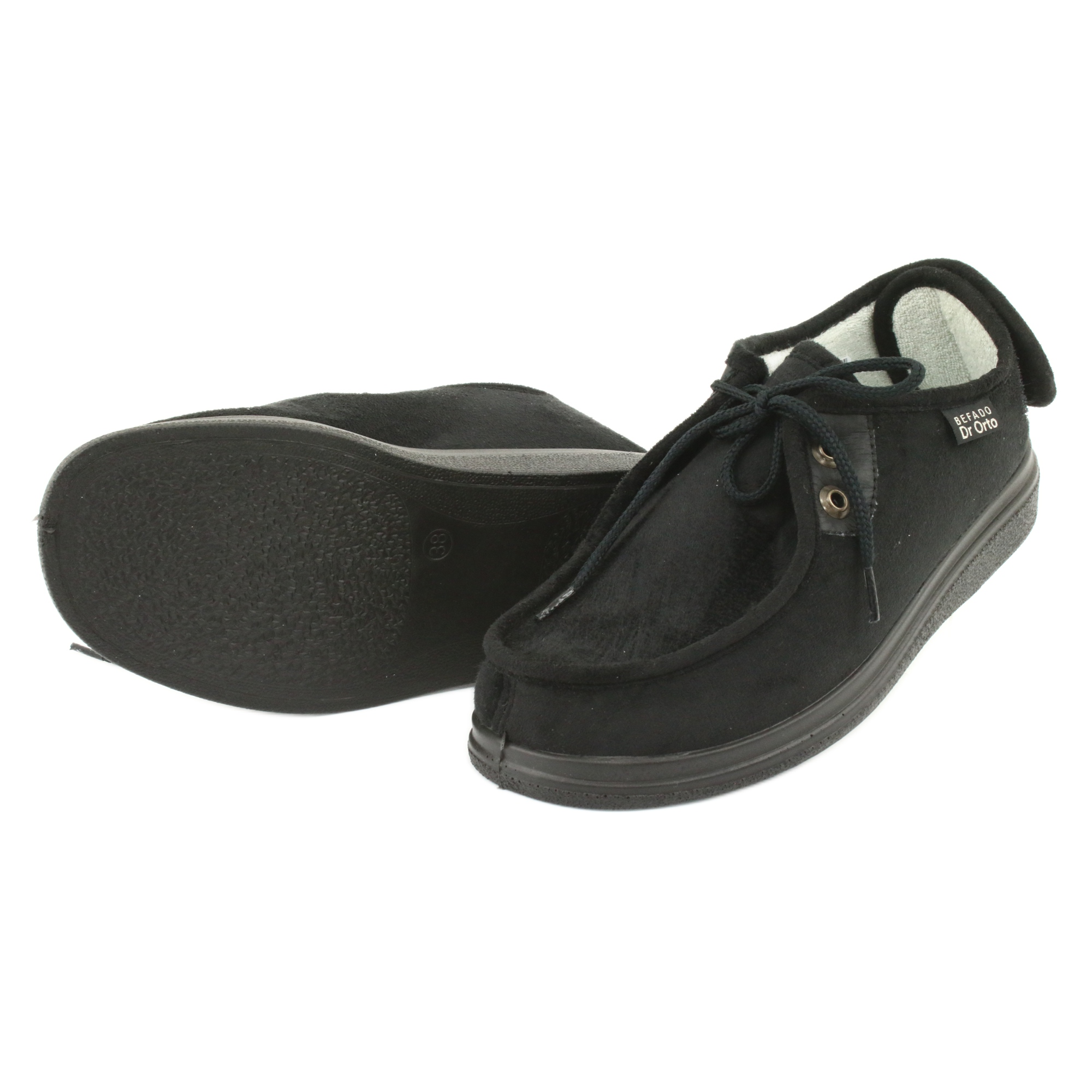 Entdecken Sie die einzigartigen Damenschuhe Befado PU 387D005 in elegantem Schwarz, die perfekt auf die Bedürfnisse von Menschen mit empfindlichen Füßen, einschließlich diabetischer Füße, abgestimmt sind. Diese Hausschuhe vereinen Komfort und Funktionalität dank der Verwendung hochwertiger Schaumstoffe und einer minimierten Anzahl von Nähten, was für Feinheit und Tragekomfort sorgt.