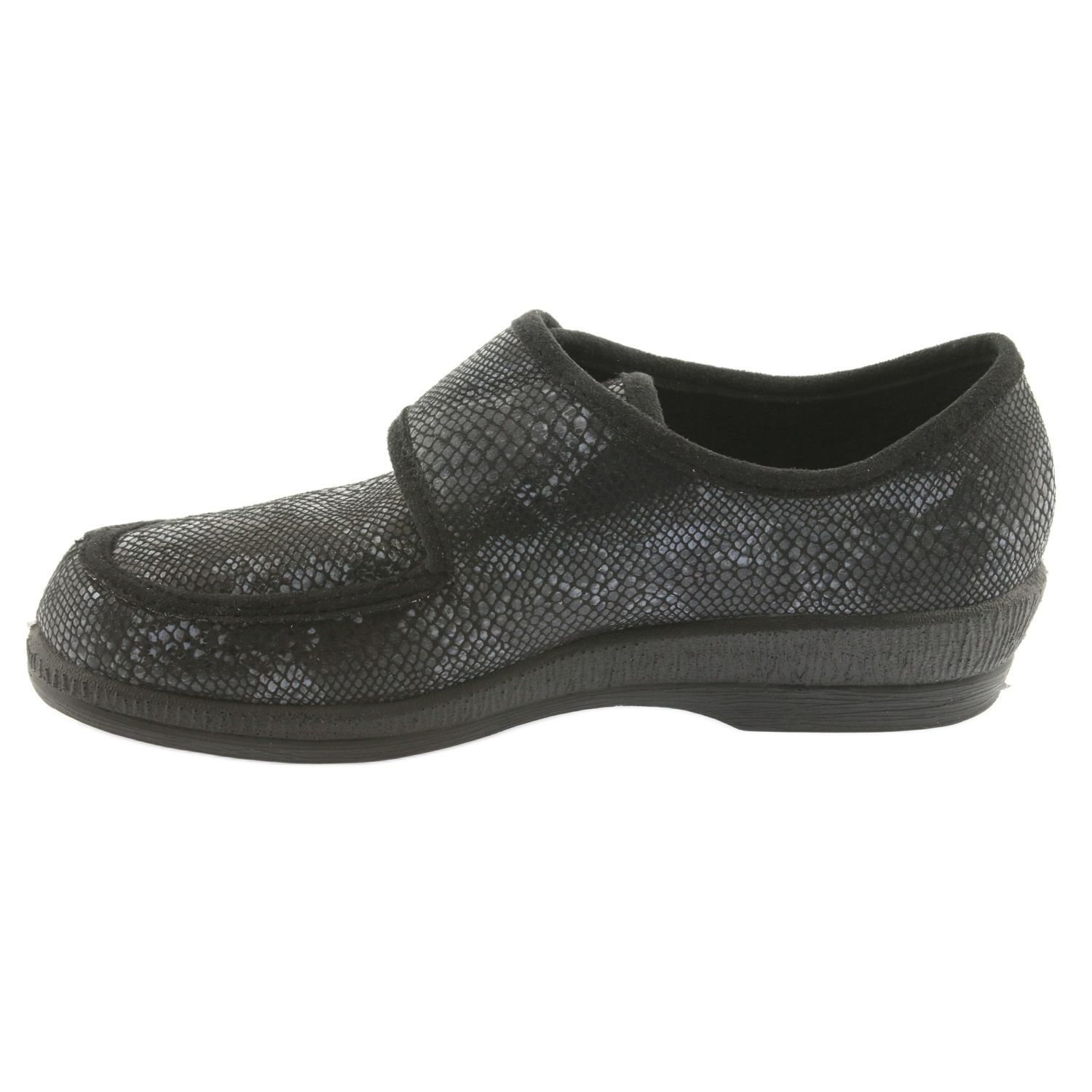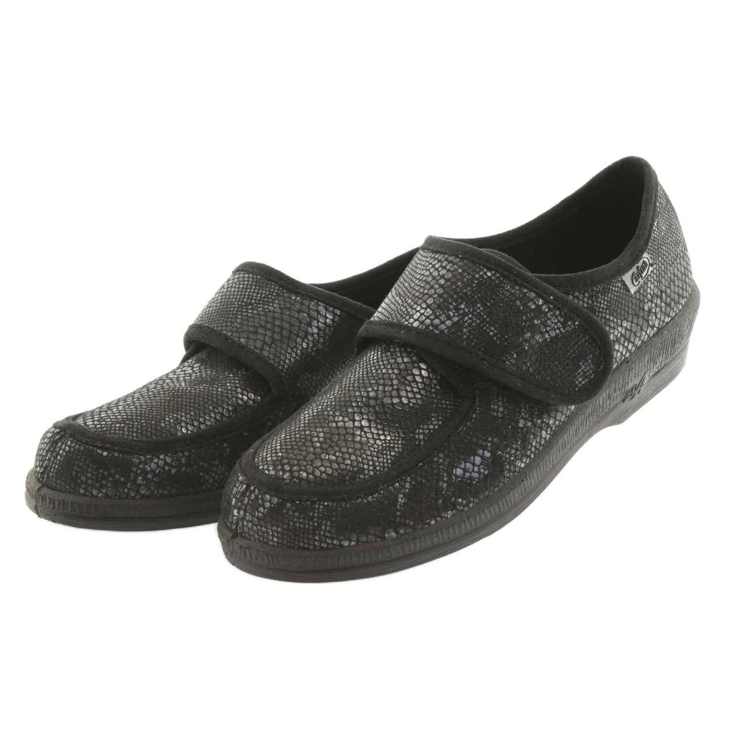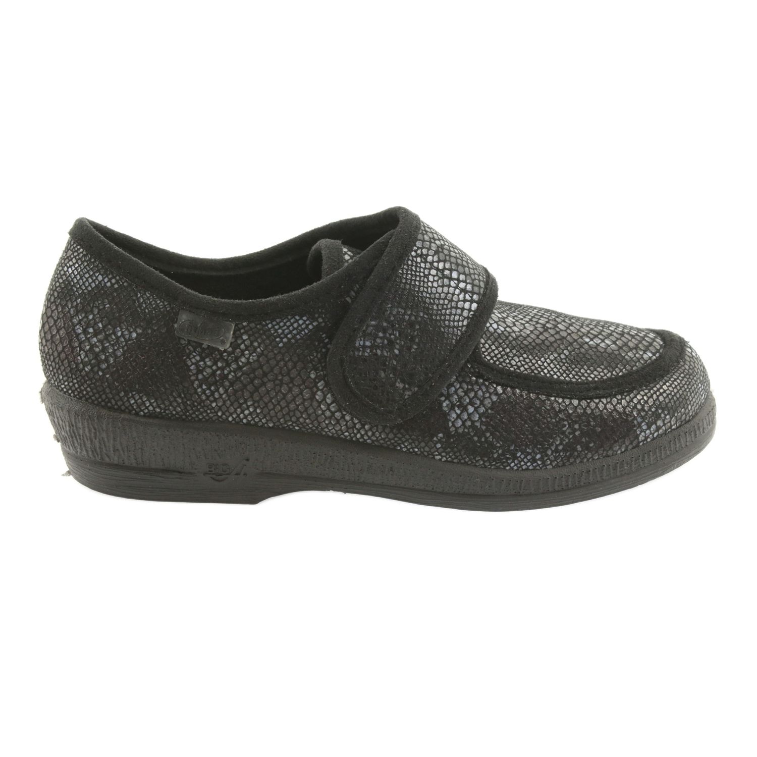 Entdecken Sie Komfort und Stil mit den Damenschuhen Befado 984D016 in Schwarz mit grauem Akzent! Es ist eine ideale Lösung sowohl zum Entspannen zu Hause als auch für einen Spaziergang im Freien. Das aus flexiblem Material gefertigte Obermaterial passt sich leicht der Fußform an, was das Schuhwerk auch für Menschen mit orthopädischen Problemen, einschließlich diabetischem Fuß, äußerst bequem macht.