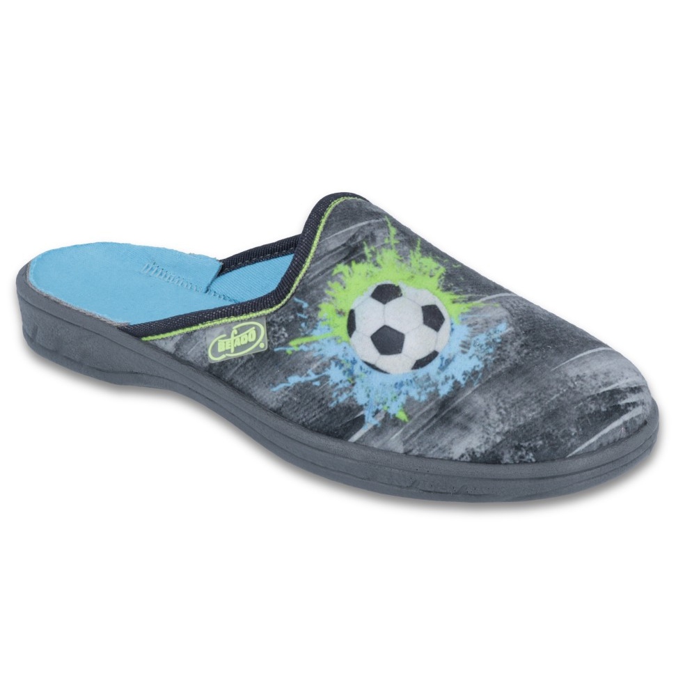 Dieses Modell verfügt über das „Gesunde Fuß“-Zertifikat, was bedeutet, dass es kinderfüßefreundlich ist und ihre richtige Entwicklung unterstützt. Durch die grauen und mehrfarbigen Farben passen die Hausschuhe perfekt zu Modetrends und sind universell einsetzbar – perfekt für Jungen.