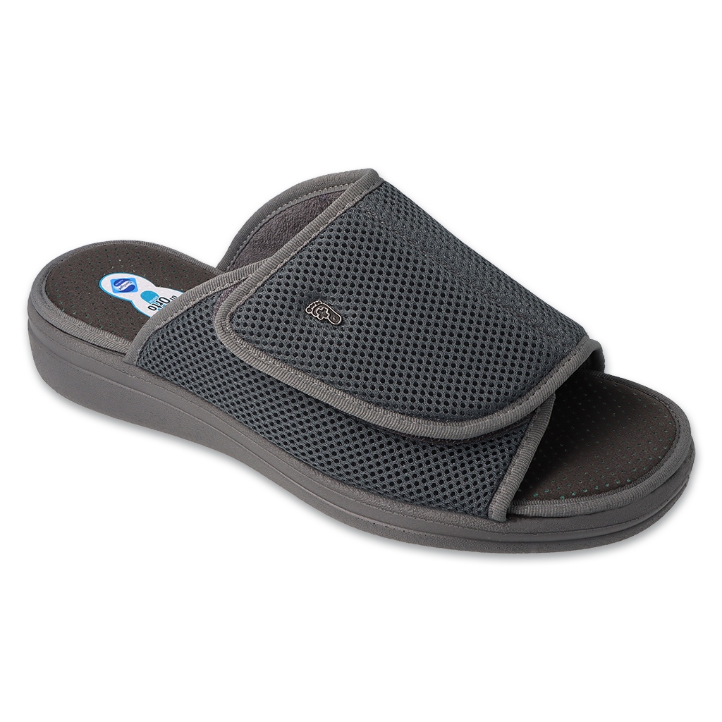 Das Modell 078M001 ist mit einem praktischen Klettverschluss ausgestattet, der das An- und Ausziehen erleichtert. Dadurch können Sie Ihre Hausschuhe auch dann schnell und einfach anziehen, wenn Sie es eilig haben. Durch die graue Farbe ohne klares Muster passen diese Hausschuhe gut zu verschiedenen Stilen, sowohl im Alltag als auch eleganter.