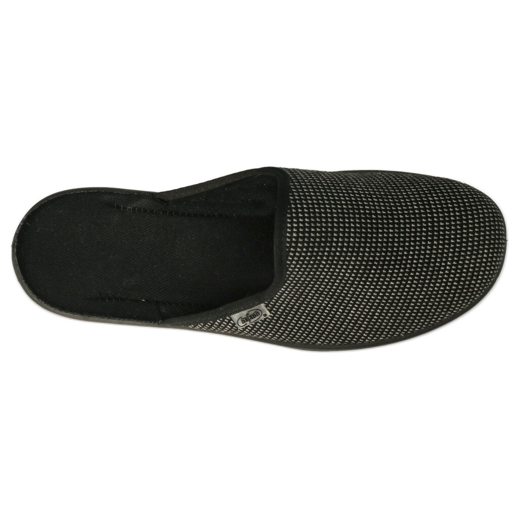 Befado Herrenschuhe PU 089M422 in Schwarz sind ein Vorschlag für Männer, die eine Kombination aus Wohnkomfort mit einem Element lässiger Eleganz suchen. Dies sind Hausschuhe, die perfekt auf die Bedürfnisse eines modernen, aktiven Mannes zugeschnitten sind, der sich nach seiner Rückkehr nach Hause entspannen und wohlfühlen möchte.
