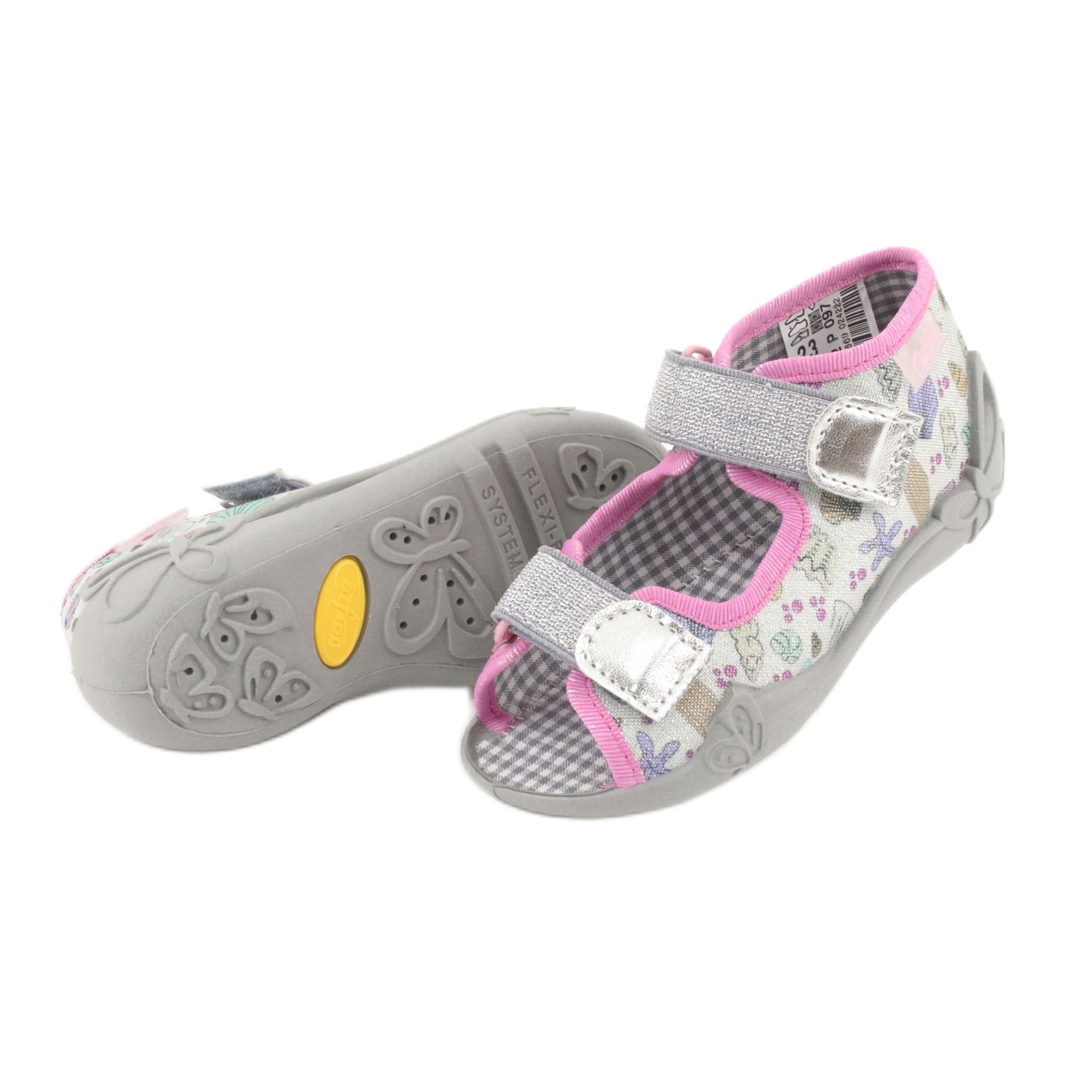 Die Kinderhausschuhe Befado 242P097 sind die perfekte Wahl für die Kleinsten, die ihre ersten Schritte machen. Diese mehrfarbigen Schuhe in Rosa- und Grautönen vereinen Sicherheit, Komfort und modisches Design und sind somit eine ideale Lösung für sonnige Tage.