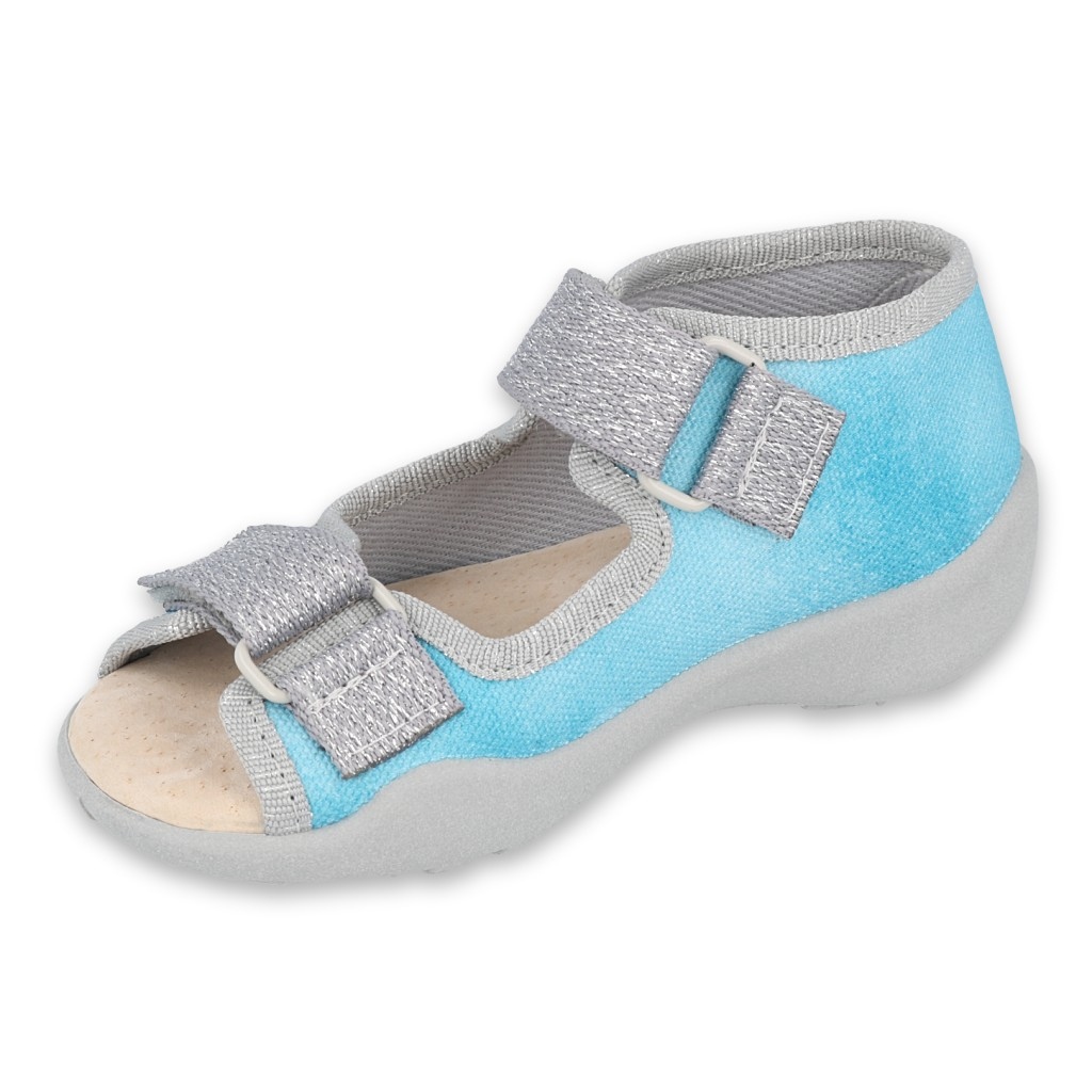Befado 342P035 Kinderschuhe sind bequeme und funktionelle Hausschuhe für aktive Kinder, die viel Zeit im Kindergarten verbringen. Ihre blau-silberne Farbe zieht die Blicke auf sich und passt gleichzeitig zu vielen Kinderstilen.