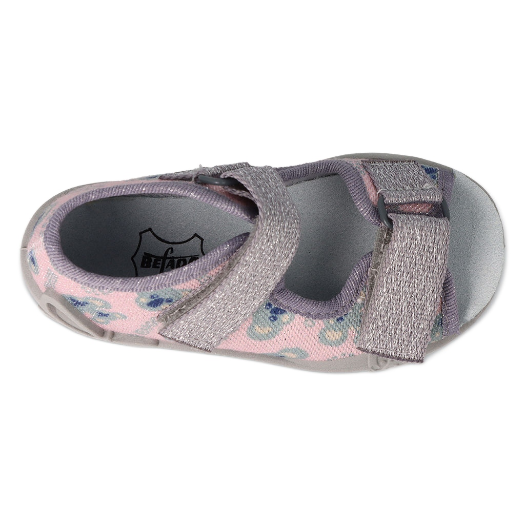 Komfort und Sicherheit beim Spielen im Kindergarten - So können Sie Befado 342p050 beschreiben. Die Schuhe wurden für die Bedürfnisse kleiner Füße ausgelegt: Eine steife Ferse und stabile Seiten behalten die richtige Position des Fußes bei, und die entdeckten Finger liefern zusätzliche Belüftung. Die Oberteile bestehen aus luftigem Baumwollstoff, was den Komfort des Tragens erhöht, und der Ledereinsatz kümmert sich um Hygiene und Komfort. Ein einfaches Klettverschlusssystem ermöglicht es dem Kind, das Schuhwerk unabhängig voneinander anzuziehen und zu passen.