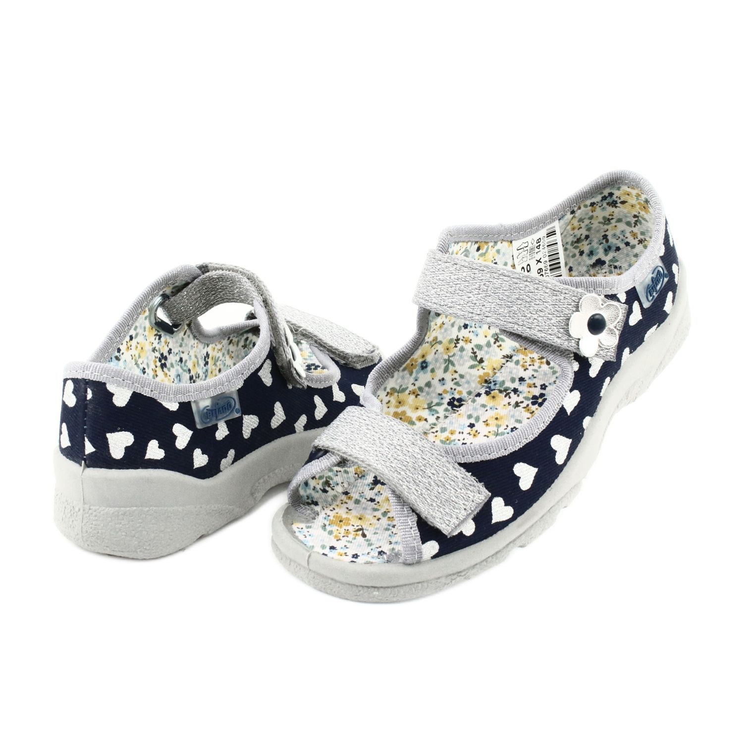 Die Befado-Kinderschuhe 969X148 in Marineblau und Grau sind die perfekte Wahl für Ihr Kleinkind und sorgen für Komfort und Sicherheit beim Spielen im Kindergarten. Dank der erhöhten Ferse und der stabilen Seiten werden die Füße richtig gestützt, was sich in einer korrekten Körperhaltung niederschlägt. Die offenen Zehen der Sandalen garantieren eine hervorragende Belüftung, was besonders an warmen Tagen wichtig ist.