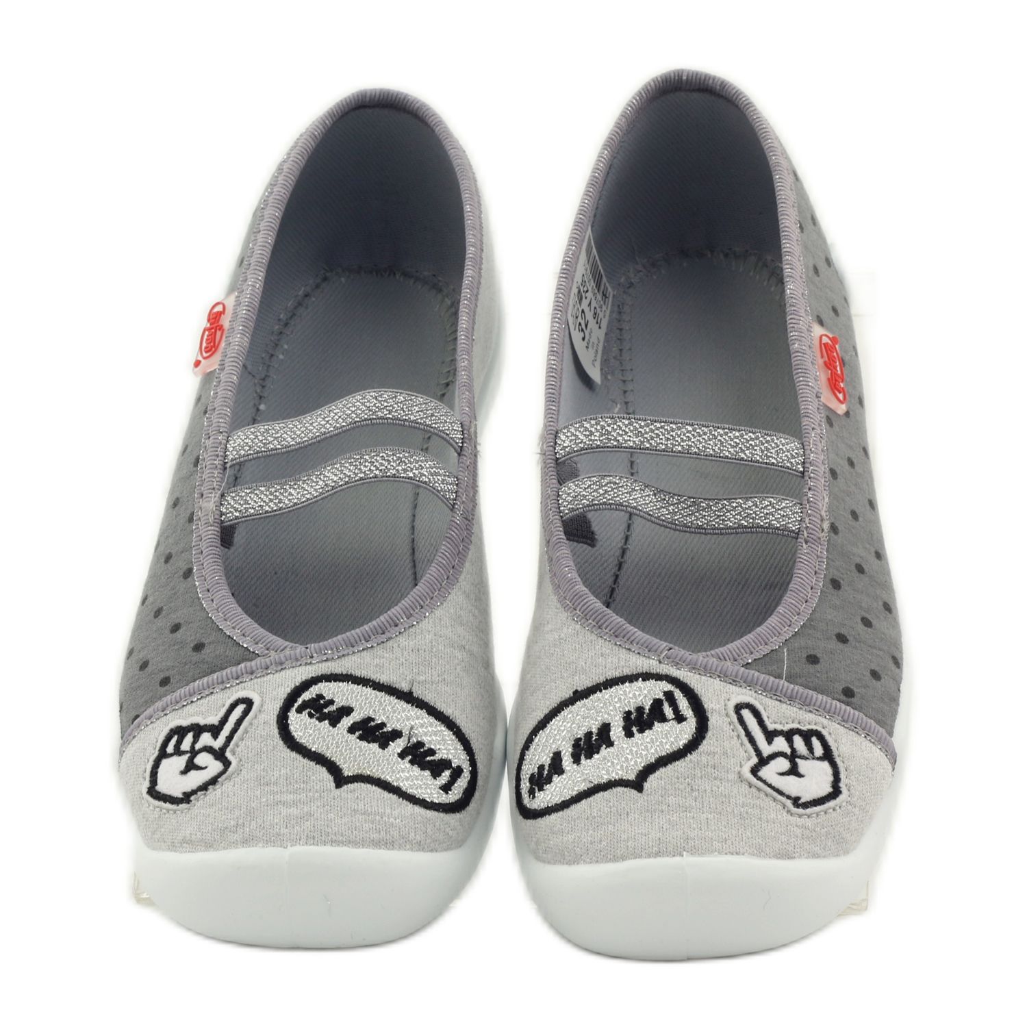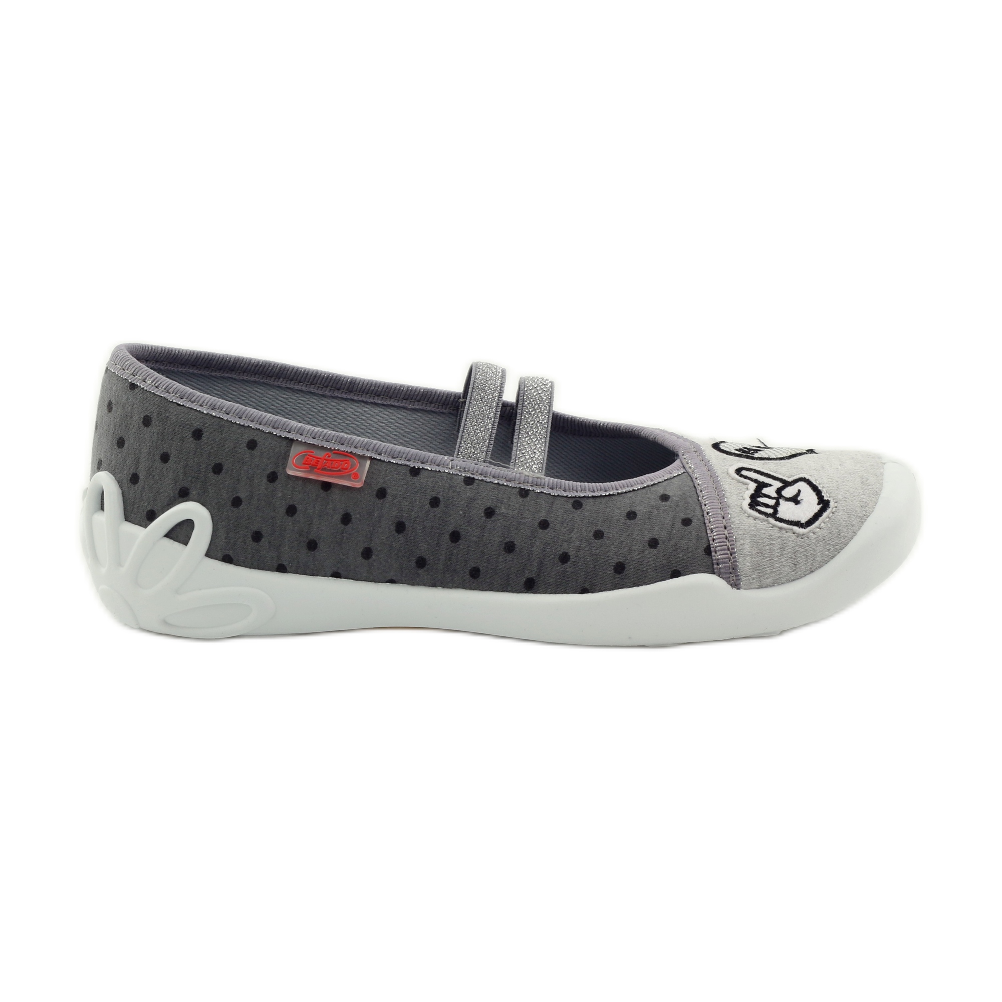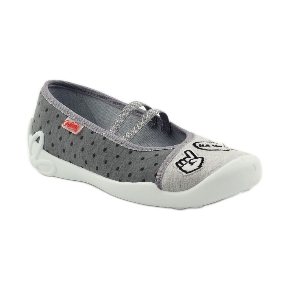 Kinderschuhe, Ballerina-Hausschuhe, Modell 116Y235, der polnischen Marke Befado sind eine ausgezeichnete Wahl für kleine Kinder im Vorschulalter und andere. Diese stilvollen, dunkelgrauen Ballerinas sind nicht nur modisch, sondern auch praktisch, wodurch sie sich perfekt zum Tragen im Kindergarten, zu Hause und im Garten eignen.