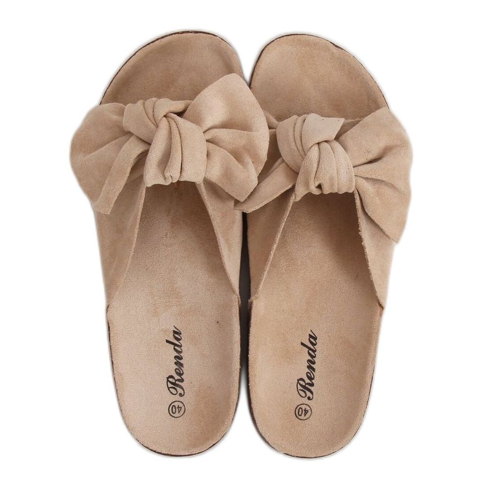 Inna marka Beige 10-218 Beige Hausschuhe mit Korksohle