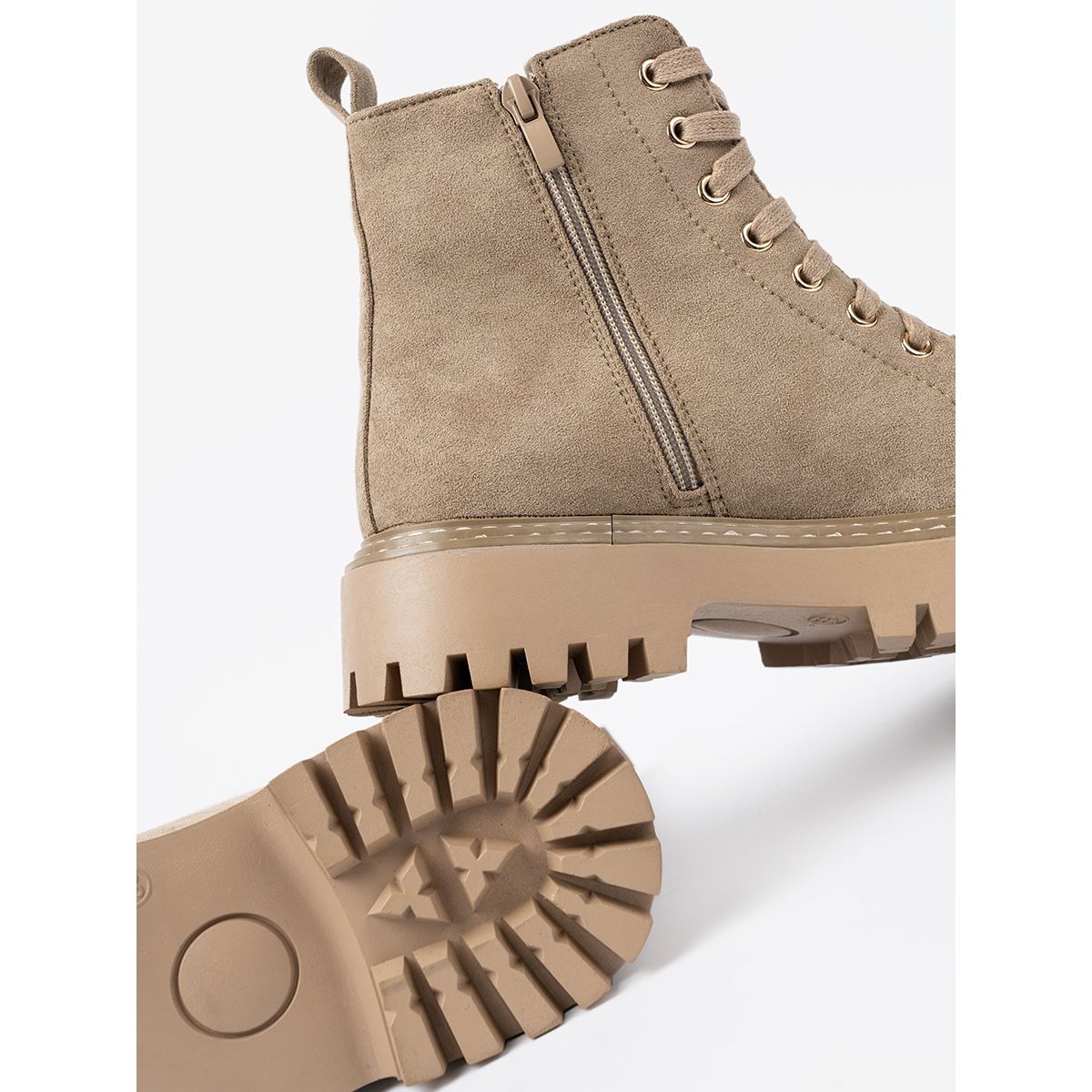 Diese Schuhe bestehen aus hochwertigem Nachahmungs Wildleder und garantieren nicht nur das ästhetische Erscheinungsbild, sondern auch die Haltbarkeit. Beige Farbe passt perfekt zu einer Vielzahl von Stilisierungen und ermöglicht die Schaffung von lässigen und etwas eleganteren Kombinationen. Die runde Nase und die volle Spitze kümmern sich um den Komfort des Tragens, und die geschlossene Ferse macht die Stiefel stabil und sicher.