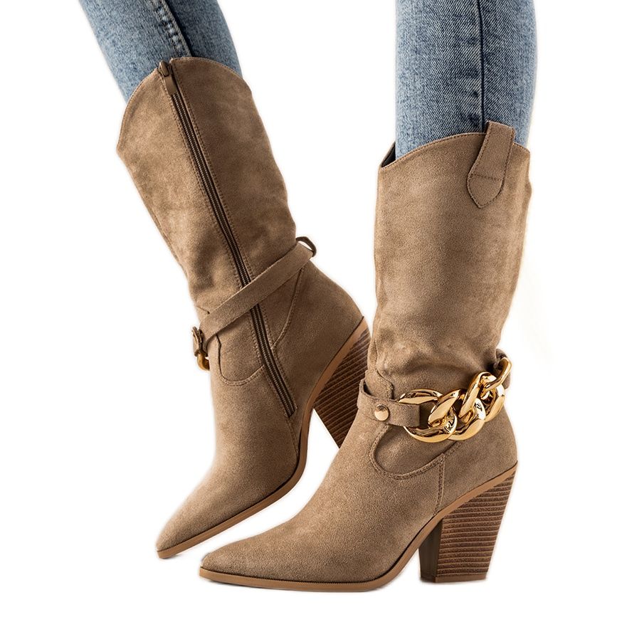 Inna marka Beige Cowboystiefel auf dem Effie Post khaki