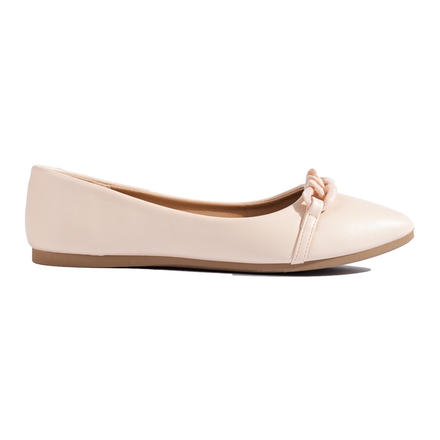 Beige Damen-Ballerinas mit spitzer Zehenpartie und Kette von W. Potocki sind die perfekte Wahl für Frauen, die Wert auf einen eleganten und lässigen Stil legen. Außen und innen aus hochwertigem Kunstleder gefertigt, bieten sie den ganzen Tag über Tragekomfort.