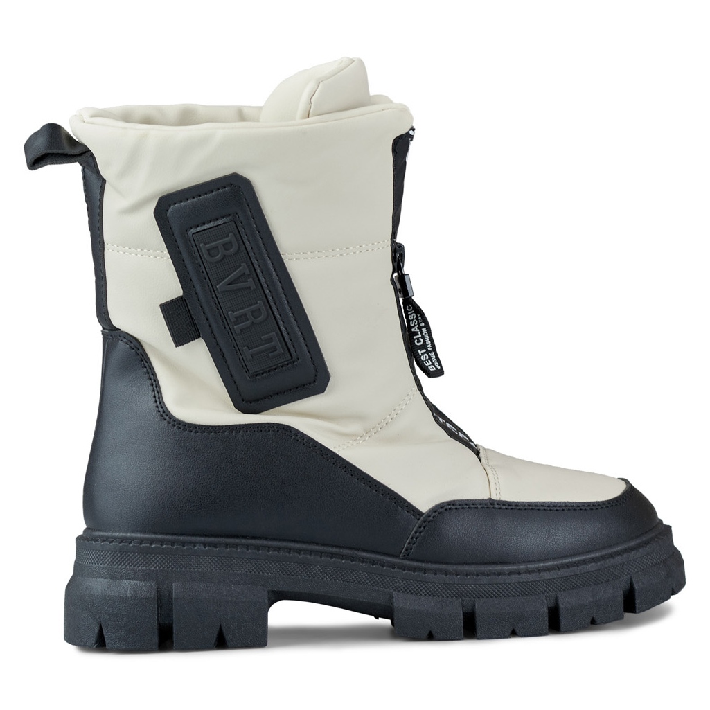 Beige Schneestiefel auf einer schwarzen Sohle sind eine praktische, stilvolle Wahl für kalte Tage - ein weiches Finish, Erwärmung und ein komfortables Reißverschluss lassen sie im täglichen Gebrauch arbeiten und einen modischen Charakter aufrechterhalten.
