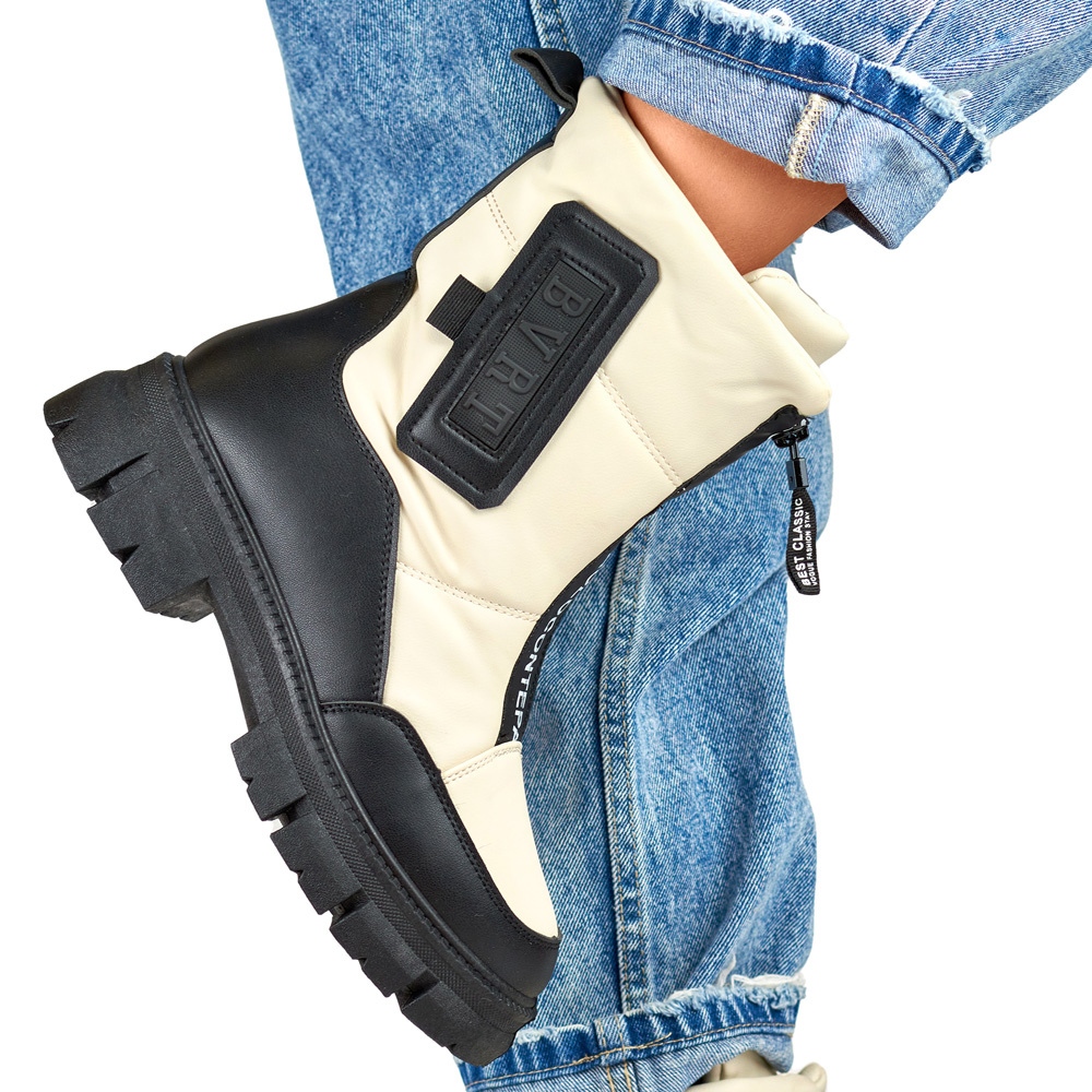 Beige Damenschnee Stiefel auf einer schwarzen Sohle - Stil und Komfort für kühlere Tage