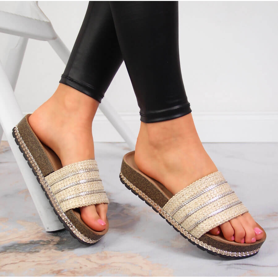 S.Barski S.Barski Beige Damenhausschuhe mit Plateau von S. Bararski
