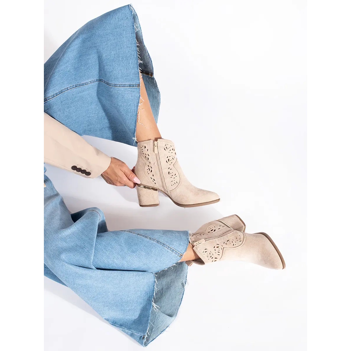 - Modell: Beige durchbrochene Cowboystiefel für Damen