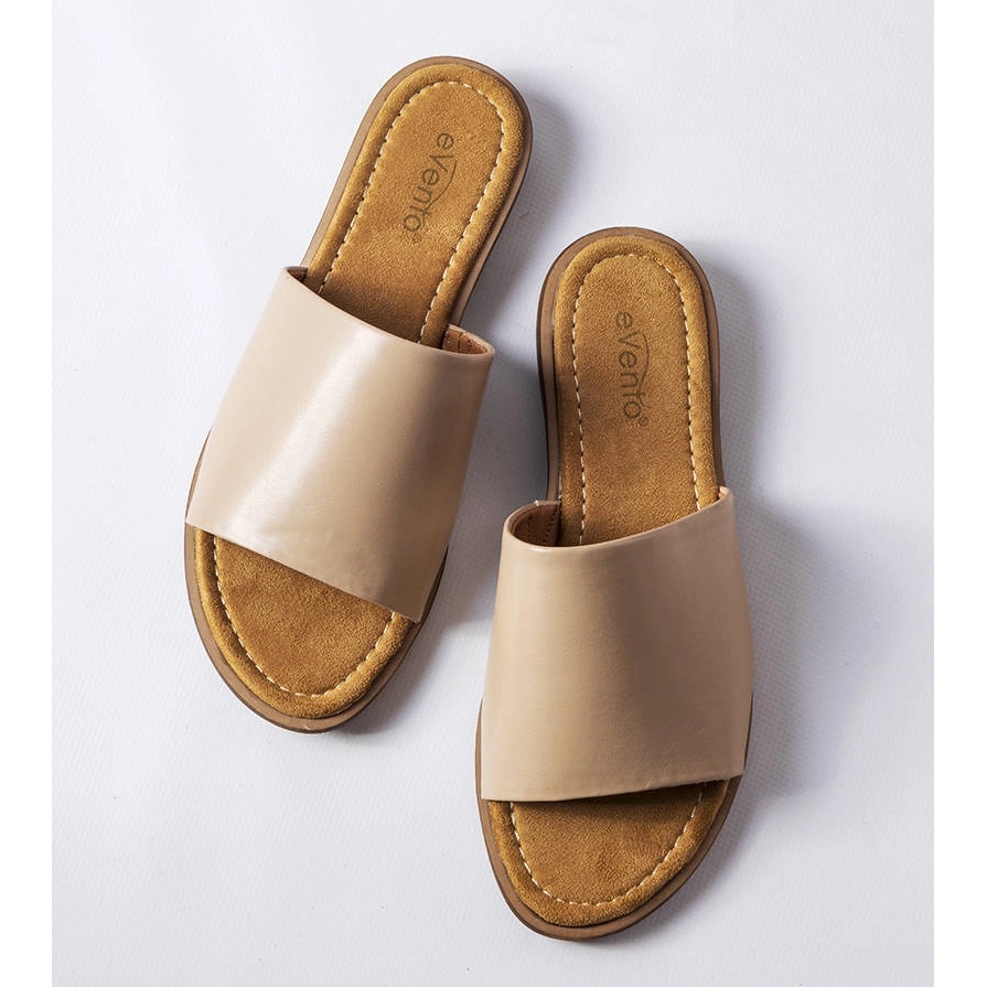 Klassische, universelle Frauenflip -Flops in einem beige Farbton, perfekt und für Sommerstilisierungen. Ein subtiler, minimalistischer Schnitt ohne Muster sorgt für einen eleganten Look, und ein flacher Absatz garantiert den ganzen Tag den Komfort.