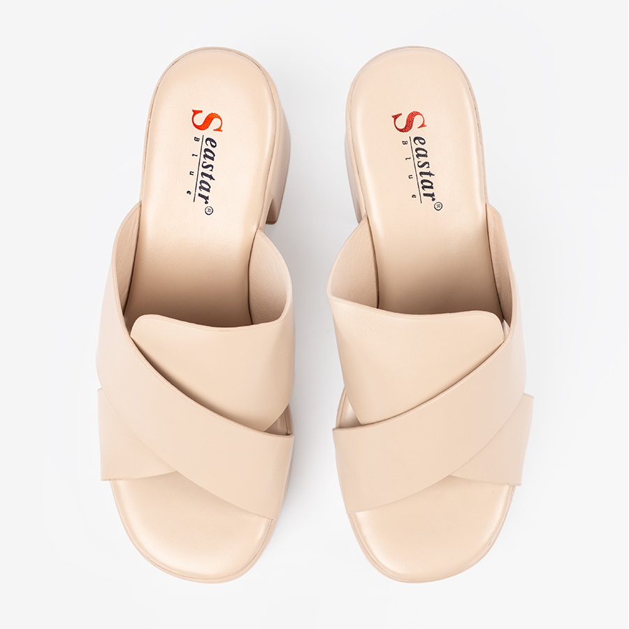 Seastar -Klappen bestehen aus hochwertigem ökologischem Leder, was einen hohen Nutzungskomfort gewährleistet. Das Innensohlenmaterial besteht auch aus Faux-Wildleder, was den Komfort des Tragens erhöht. Die beige Farbe der Klappen bedeutet, dass sie leicht mit verschiedenen Stilisierungen kombiniert werden können - sowohl lässig als auch eleganter.