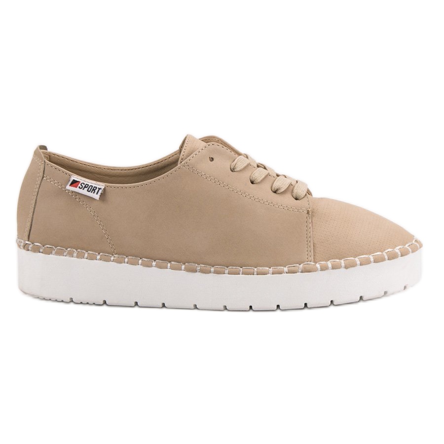 Beigefarbene Schuhe passen perfekt zu einer Vielzahl von Stilen, von alltagstauglich bis etwas eleganter. Die Plattformhöhe von 3,5 cm sorgt für einen sanften Hebeeffekt, ohne den Fuß zu belasten. Der Schnürverschluss ermöglicht eine einfache Anpassung an die individuellen Bedürfnisse.