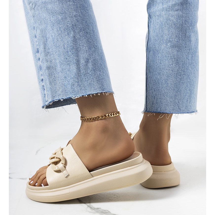 Details: BM Beige Hausschuhe mit Levy-Kette