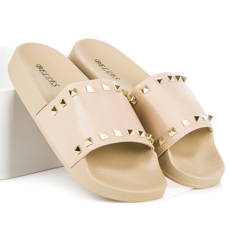 Inna marka Beige Hausschuhe mit Strasssteinen