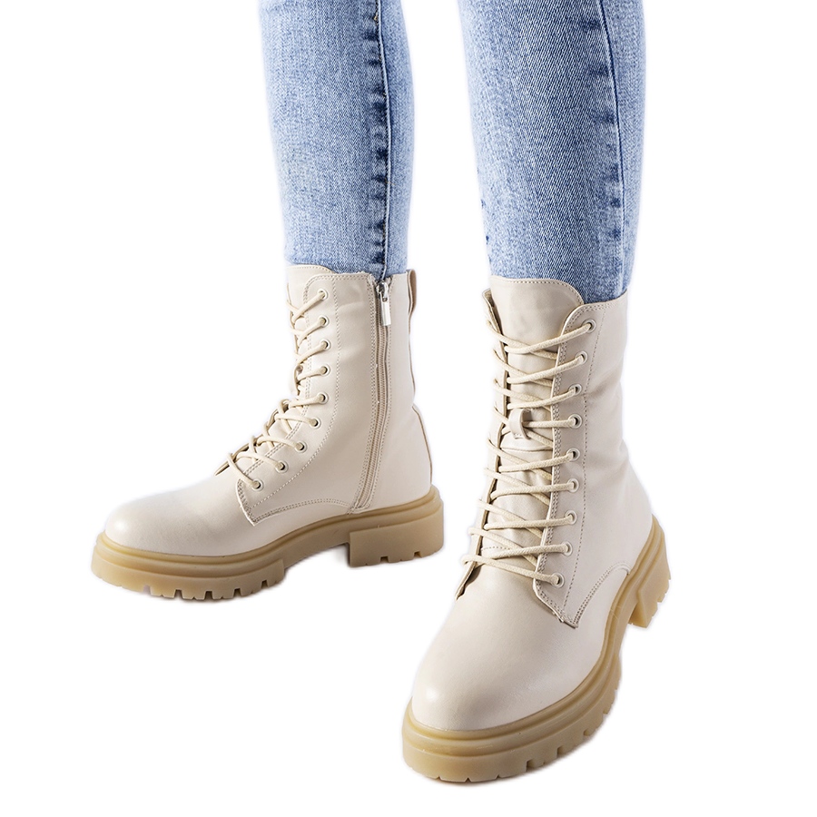 Beige Stiefel beige klassisch, beige, sind ein Vorschlag für Frauen, die Komfort und praktisches Erscheinungsbild schätzen. Das flache Modell mit Isolierung bietet selbst bei niedrigen Temperaturen Komfort, und elegante Beige fügt sich perfekt mit vielen Winterstilisationen ein.