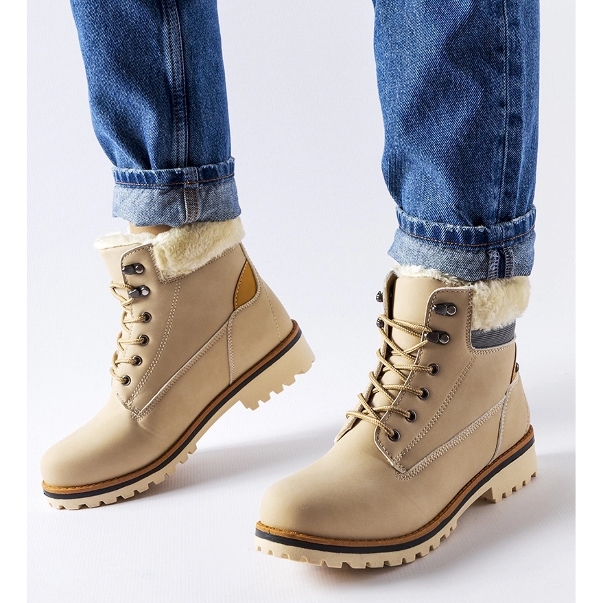 Beige Montalbino -Traper sind praktische und stilvolle Schuhe für den Winter - Komfort, Wärme und universelles Aussehen in einem.