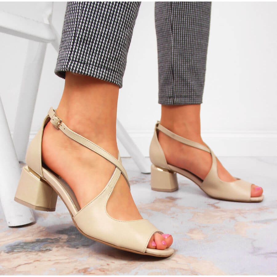 Details: Beige Ledersandalen für Damen mit High Heels Juma