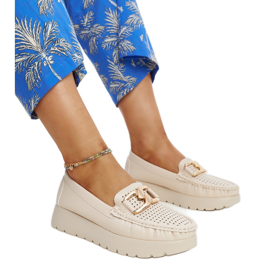 Inna marka Beige Lederschuhe mit dekorativer Schnalle