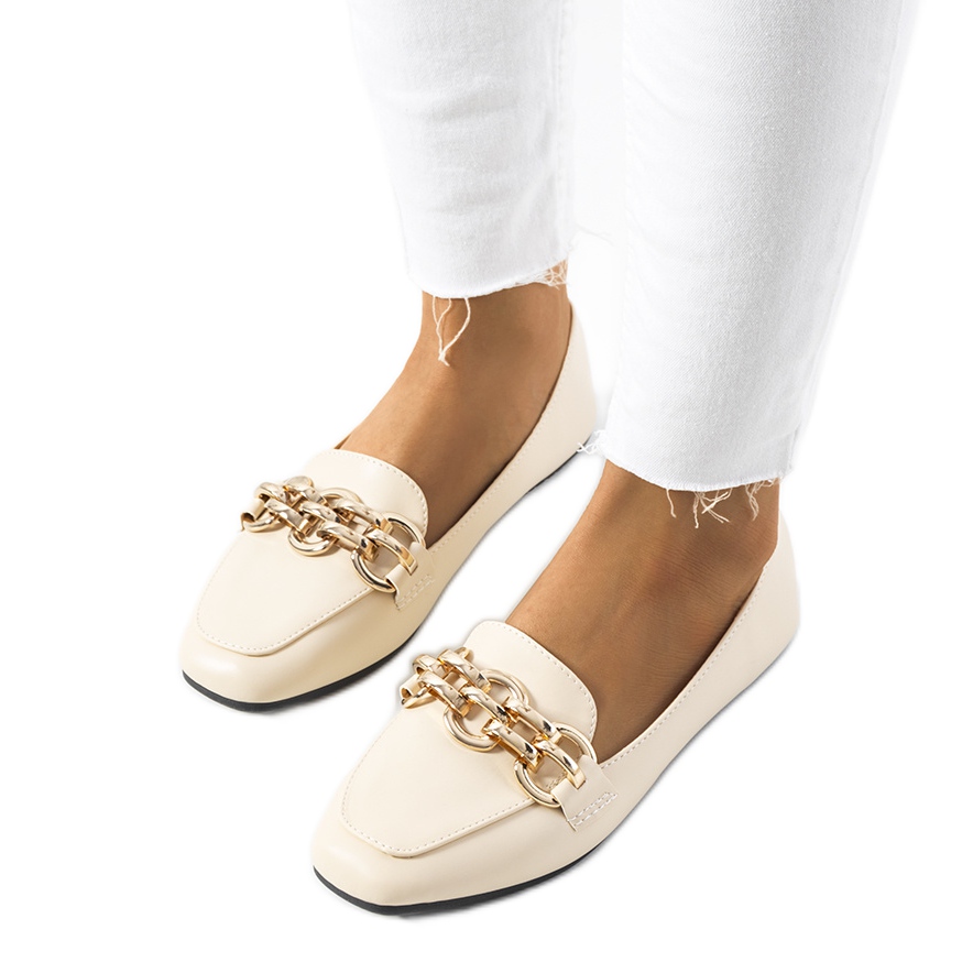 Beigefarbene Mokassins mit Tillison-Kette sind die perfekte Wahl für jede Frau, die Eleganz mit Komfort verbinden möchte. Diese aus hochwertigem Kunstleder gefertigten Mokassins sind nicht nur weich, sondern schmiegen sich auch gut an den Fuß an und sorgen so für Komfort beim ganztägigen Tragen.