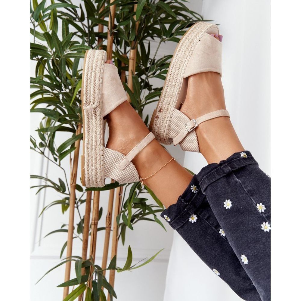 Details: Beige Megara Sandalen auf der geflochtenen Plattform