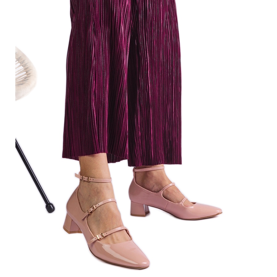 Diese Pumpen bestehen aus ökologischem, lackiertem Leder und fesseln mit einem schönen Glühen, der ins Auge fällt. Ihre subtile Mandelnase und eine flache Ferse mit einer Höhe von 4 cm machen sie nicht nur stilvoll, sondern auch äußerst bequem, was sie sowohl täglich als auch für besondere Anlässe zur perfekten Wahl macht. Ein zusätzlicher Gürtel mit einer Schnalle verleiht nicht nur Charakter, sondern sorgt auch beim Gehen.