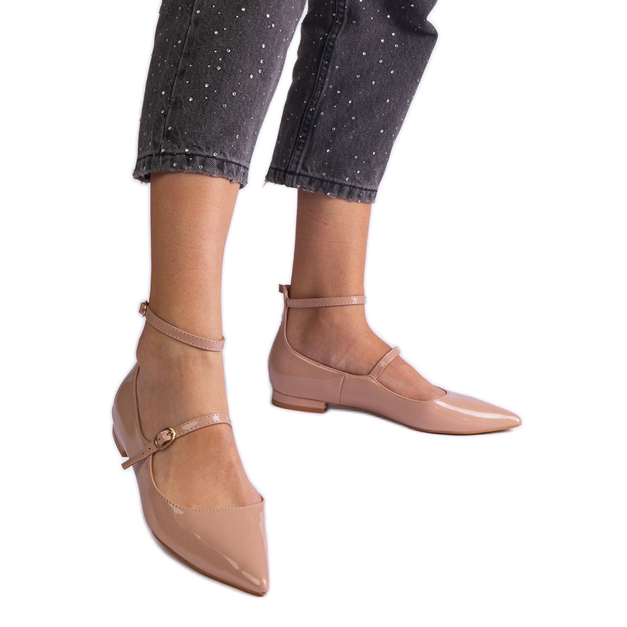 Inna marka Beige Pumpen, die mit flachen Absätzen mit beige Schnallen lackiert sind
