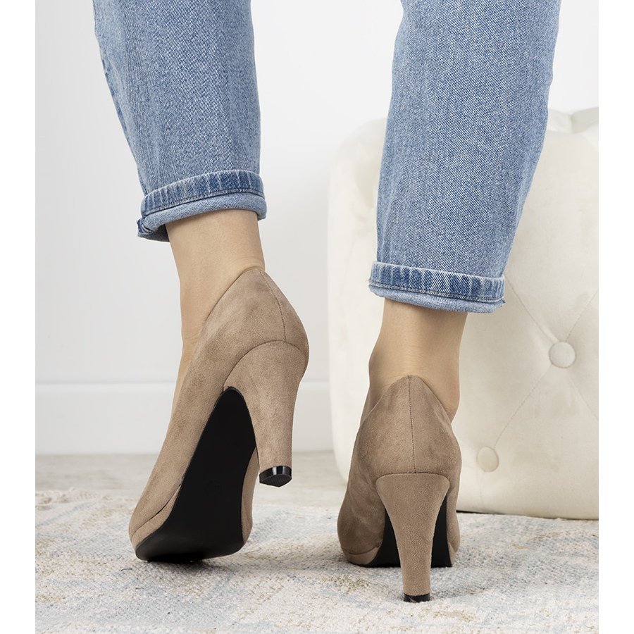 Beigefarbene Pumps mit hohen Absätzen aus Kunstleder Sara sind die perfekte Wahl für Frauen, die Wert auf Eleganz gepaart mit Komfort legen. Dieser klassische Stil aus ökologischem Wildleder zieht die Blicke auf sich und passt perfekt zu den neuesten Modetrends.