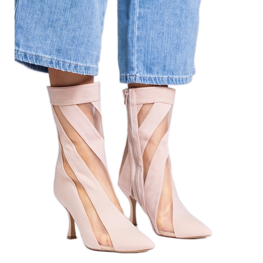 Inna marka Beige Satinstiefel mit einem Netz auf einer High Heel