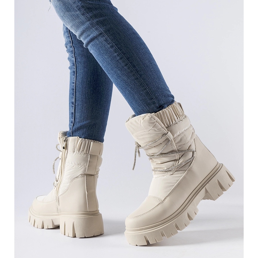 Petttenasco Beige Schneestiefel mit Zirkonen - Stil und Komfort für kalte Tage
