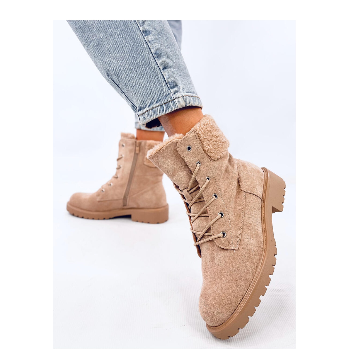Hier sind klassische Frauenstiefel Spitze in beige Farbe, die nicht nur mit Stil, sondern auch mit dem Komfort des Tragens erfreuen. Charmante Details wie ein weiches Lamm, das das Obermaterial umgibt, verleihen ihnen einen einzigartigen Charakter, der sie von anderen Modellen unterscheidet.