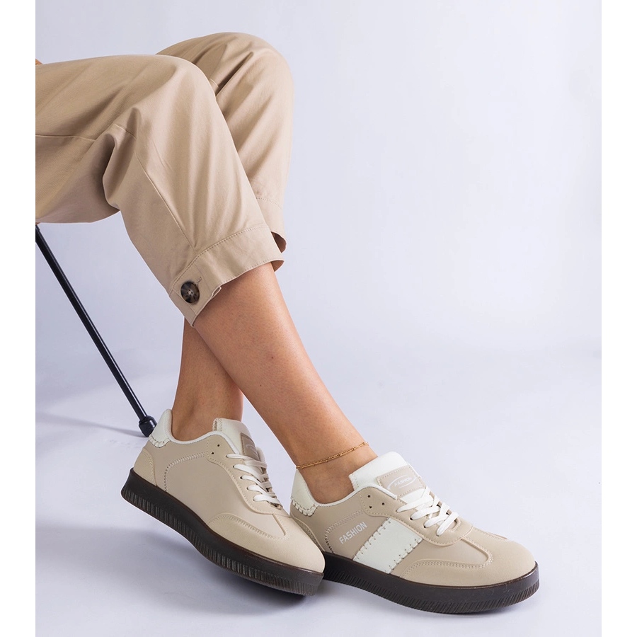 Warten Sie nicht länger und stellen Sie diese modischen beige Sneakers A-101 in Ihre Garderobe ein. Sie werden sicherlich den Charakter jeder Stilisierung hinzufügen, und Sie werden sich in ihnen sowohl bequem als auch stilvoll fühlen, unabhängig von dem Anlass!