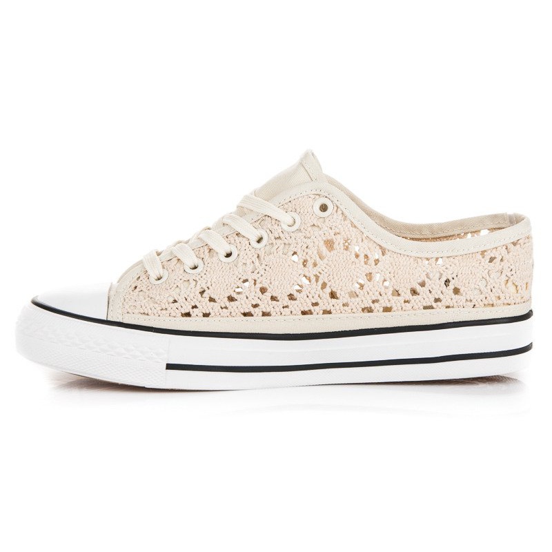 Beigefarbene Spitzensneaker sind die perfekte Wahl für Frauen, die sowohl Wert auf Komfort als auch auf Stil legen. Diese von der Marke Inna Marka hergestellten niedrigen Sneakers kombinieren modernes Design mit klassischen Elementen. Sie sind aus hochwertigem Stoff gefertigt und bieten außergewöhnliche Leichtigkeit und Atmungsaktivität, was sie perfekt für wärmere Tage macht.