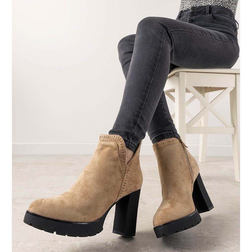 Der 9,5 cm hohe Absatz und das matt lackierte Plateau garantieren Stabilität und Komfort bei alltäglichen Spaziergängen durch die Stadt. Stiefeletten mit Reißverschluss sind nicht nur praktisch, sondern auch einfach anzuziehen.