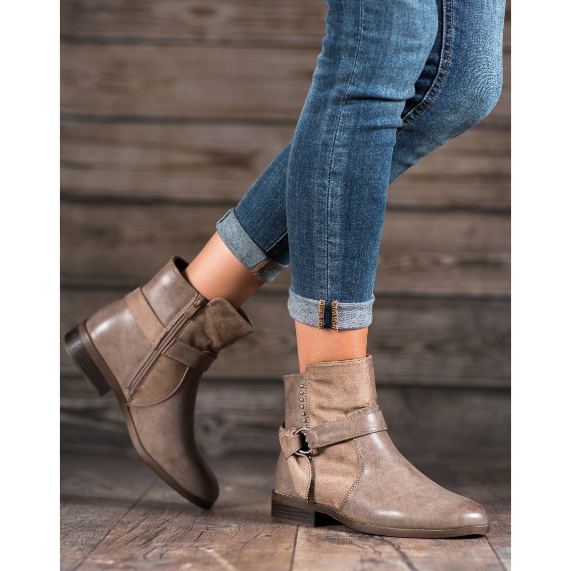 Entdecken Sie Eleganz und Komfort in Form der beigefarbenen SDS-Damenstiefeletten, die perfekt zu den Trends der Herbst-/Wintersaison passen. Diese aus hochwertigem braunem Faux-Wildleder gefertigten Schuhe fallen durch den beigen Wildledereinsatz ins Auge, der ihnen einen einzigartigen Charakter verleiht. Ein breiter, 3 cm hoher Absatz sorgt für Stabilität und Tragekomfort, was sie zu einer hervorragenden Wahl für den täglichen Gebrauch macht.