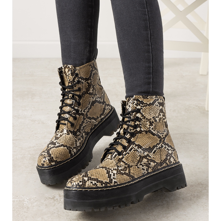 Details: Beige Stiefel mit Schlangenhautmuster von Deross braun
