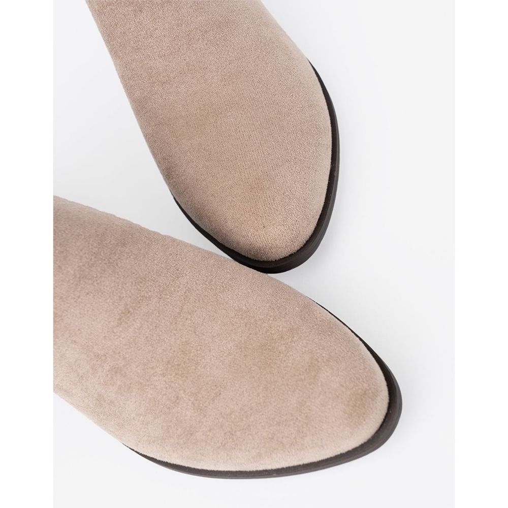 Die beige Farbe dieser Stiefel lassen sie gut mit verschiedenen Outfits einfügen - von Jeans über Röcke bis hin zu Kleidern. Mit der Breite der oberen 22 cm und einer Höhe von 11 cm passen die Stiefel perfekt zu den Beinen, und 3 cm Ferse verleihen Eleganz ohne Komfortverlust.