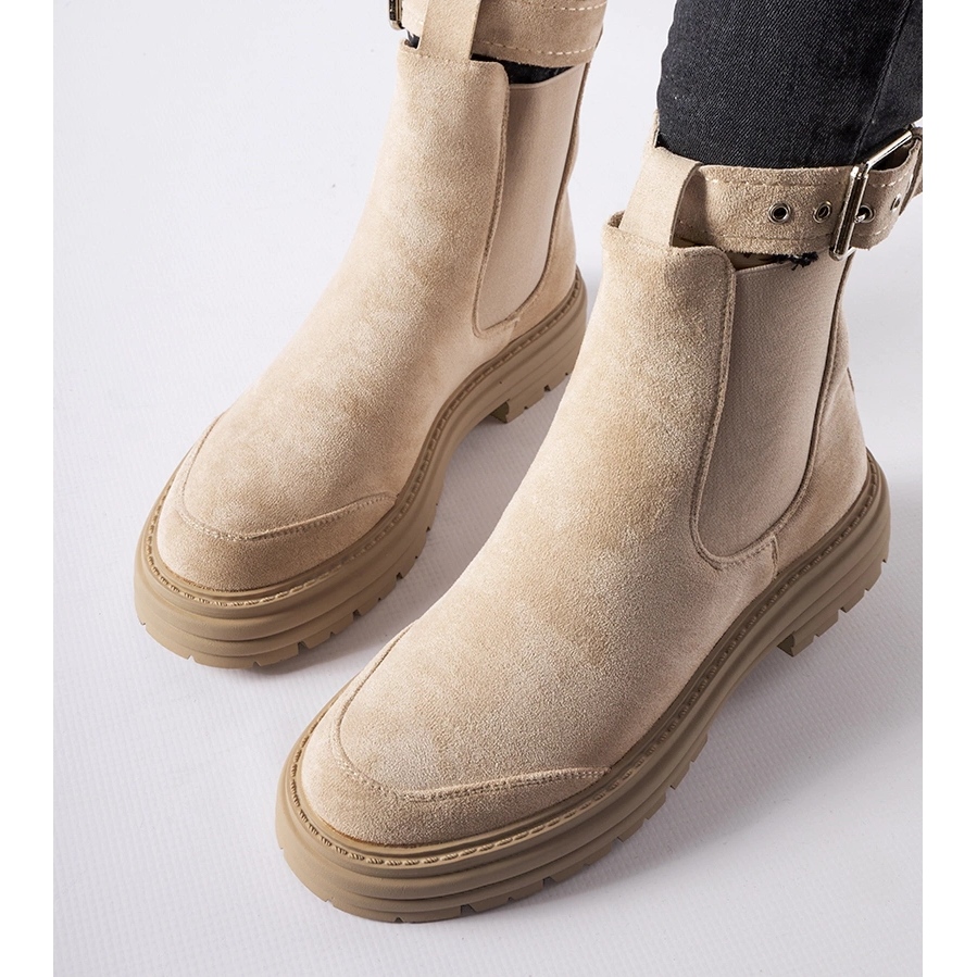 Beige Stiefel mit einem dekorativen Verschluss - Modell 5773 (Beige)