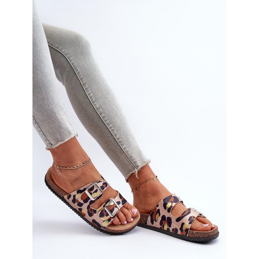Details: Beige und braune Damen-Flip-Flops mit Schnallen Oliena