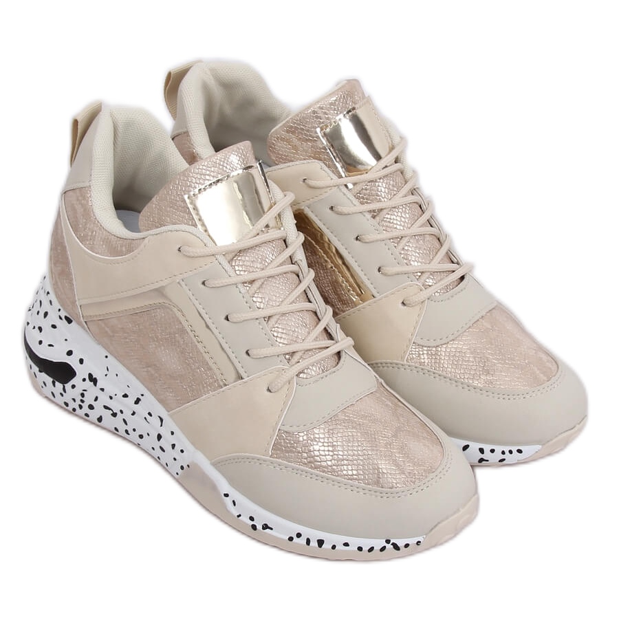 Inna marka Beige und goldfarbene Sportschuhe mit Keilabsatz